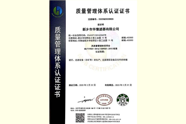 新鄉(xiāng)市華豫集團(tuán)質(zhì)量管理體系認(rèn)證書